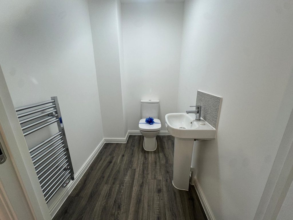 - Heated chrome towel rail in bathroom and downstairs WC